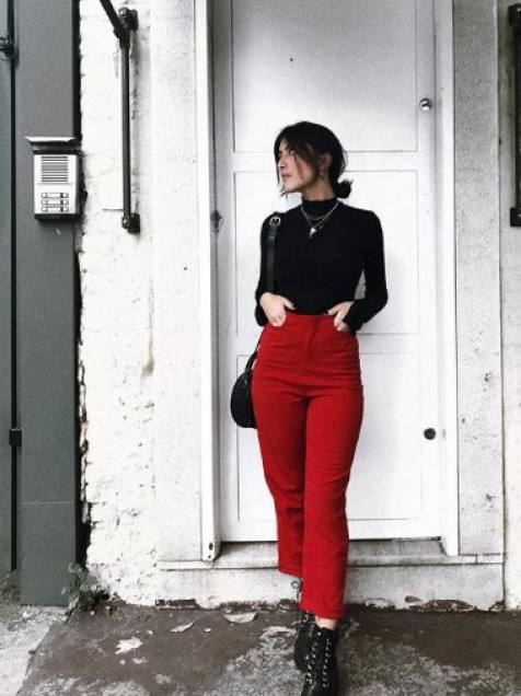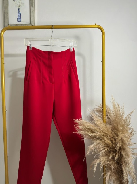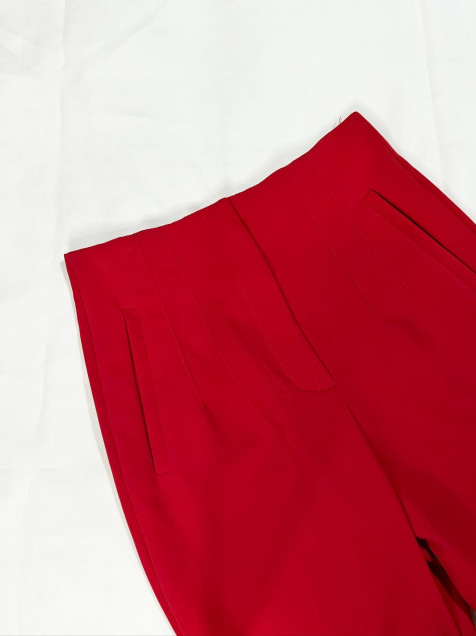 PANTALÓN PINZAS TIRO ALTO ROJO