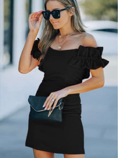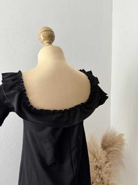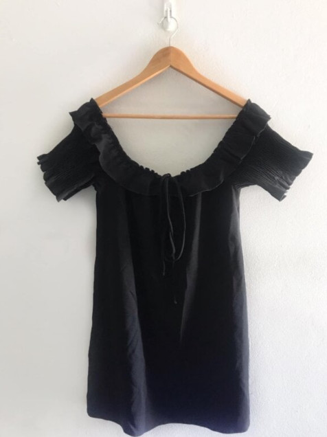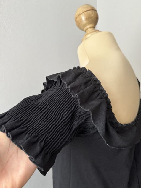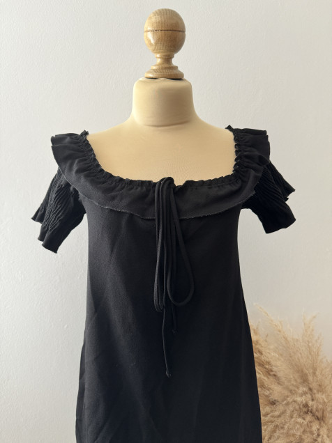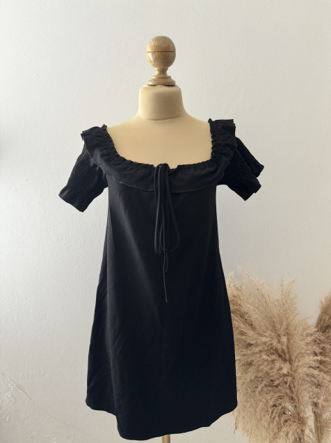 Vestido negro mangas abullonadas zara