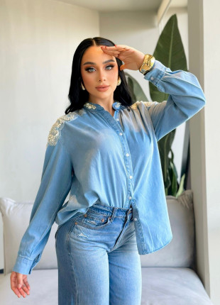 CAMISA DE MEZCLILLA CON APLICACIÓN PEDRERÍA
