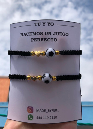 Hermoso duo de pulseras de balón de fútbol ⚽️😍 (se puede personalizar al igual que la tarjeta💜) no te quedes sin la tuya!!