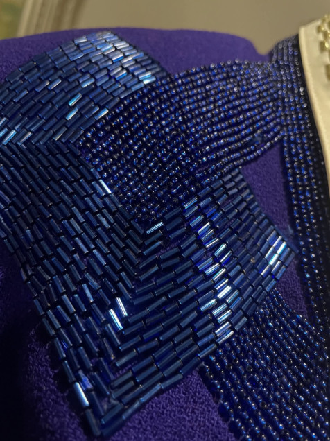 🧵 Bordado a mano en rombos con mostacillas tubulares y chaquiras azul marino