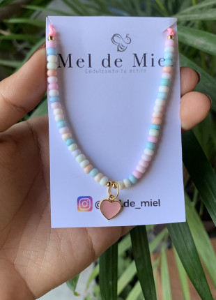 Pulsera tonos pasteles con corazón rosa