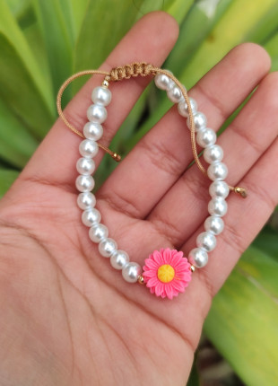 Pulsera de perlas con flor