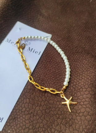 Pulsera de perlas y cadena