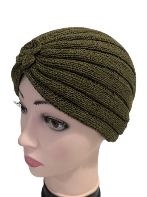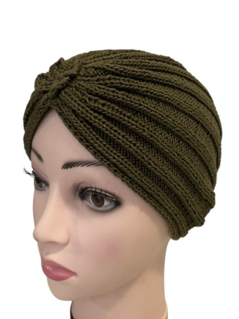 Tirbante tejido a mano 100% algodón mercerizado. Verde Olivo.