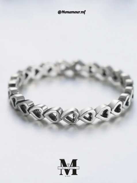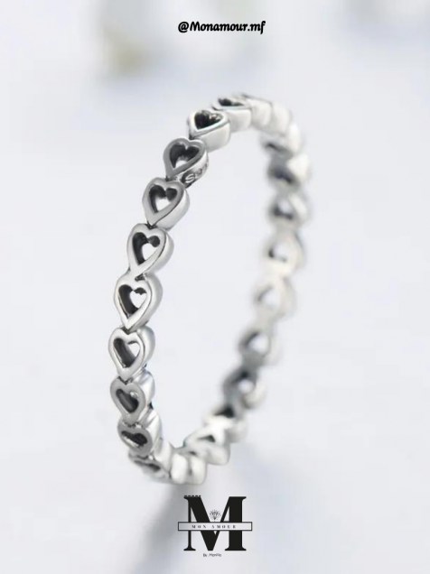 Anillo idéntico a el de la icónica marca Pandora. Lleno de siluetas de corazones .