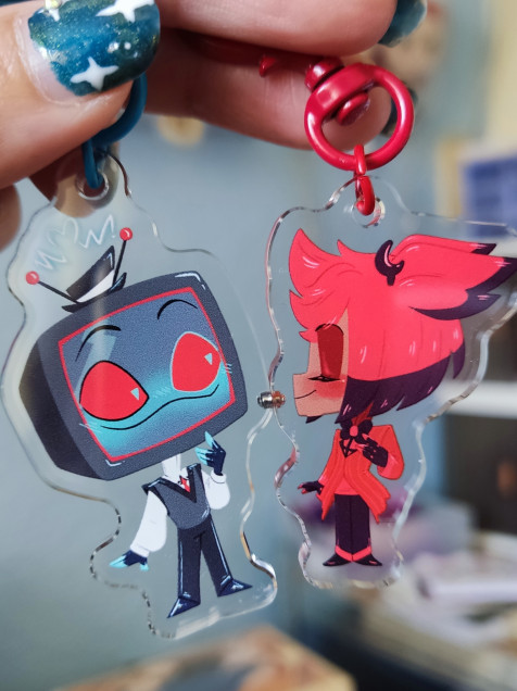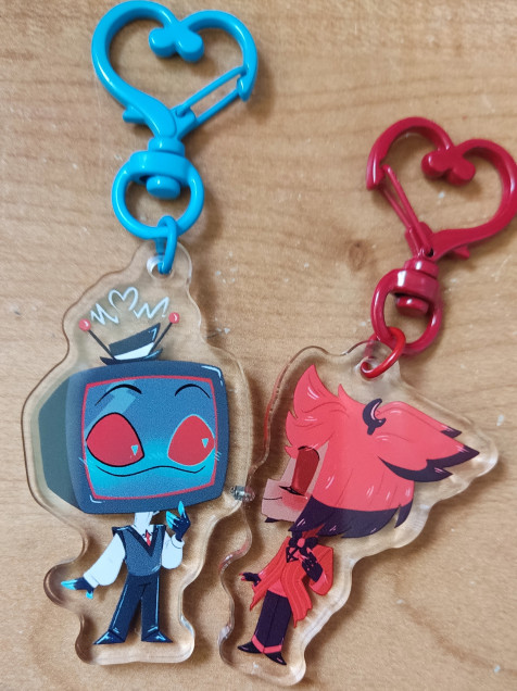 Par de llaveros doble vista de 4cm de alto aprox.