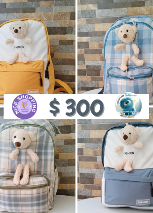 MOCHILA ESCOLAR OSITO CUADROS Y LISA
