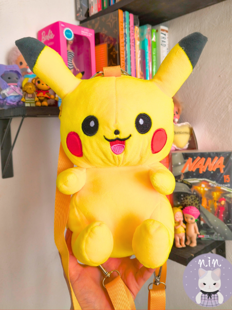 Pikachu mide 28x13 y la bolsa de mochila mide 14x15
