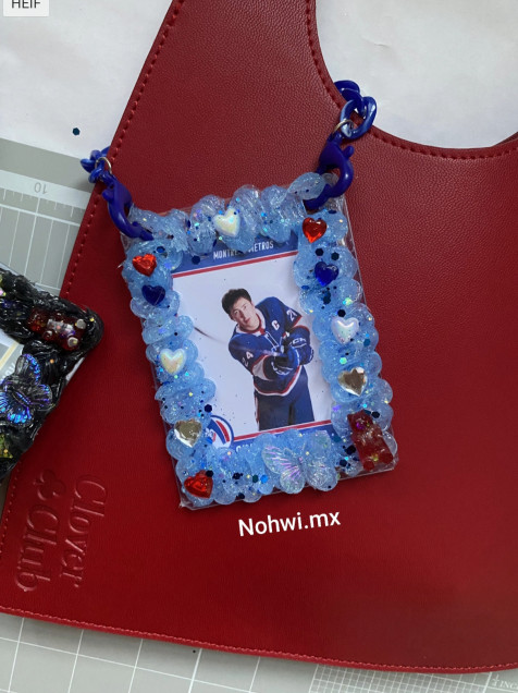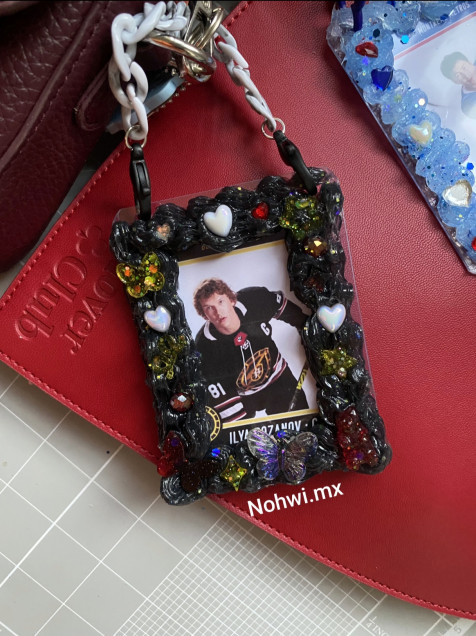 Toploader decorado con crema falsa, figuras de resina y cadena para agregar a tu bolsa,