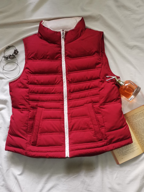 Hermoso chaleco de plumas con bolsitas en ambos lados NUEVO