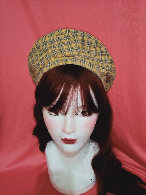 Boina a cuadros amarillo con azul