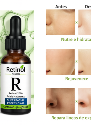 Suero Facial Retinol 2.5% Con Acido Hialuronico 30ml Todo Tipo De Piel Noche