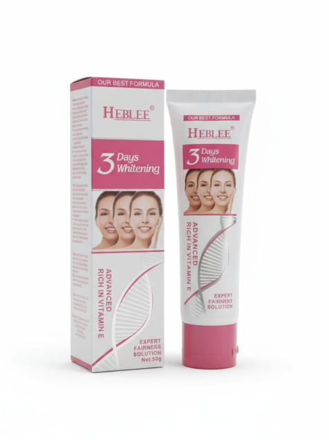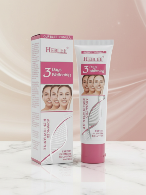 ¡Dale luz a tu piel con Heblee! Crema facial y corporal aclarante, enriquecida con vitamina E. Fórmula experta para un tono de piel más uniforme y radiante en ¡solo 3 días! Dile adiós a las manchas y hola a una piel luminosa.