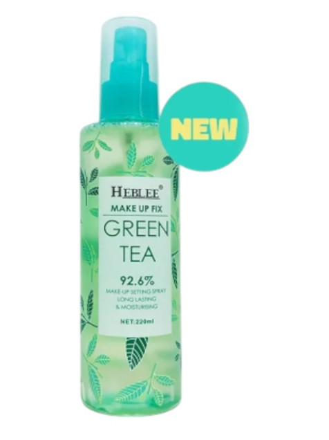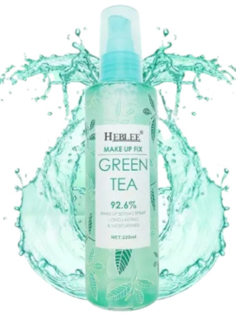 ¡Adiós, retoques! El Fijador de Maquillaje Heblee con extracto de té verde sella tu look, prolongando su duración con un acabado fresco e hidratante. ¡Lista para todo el día! Presentación jumbo de 220ml.