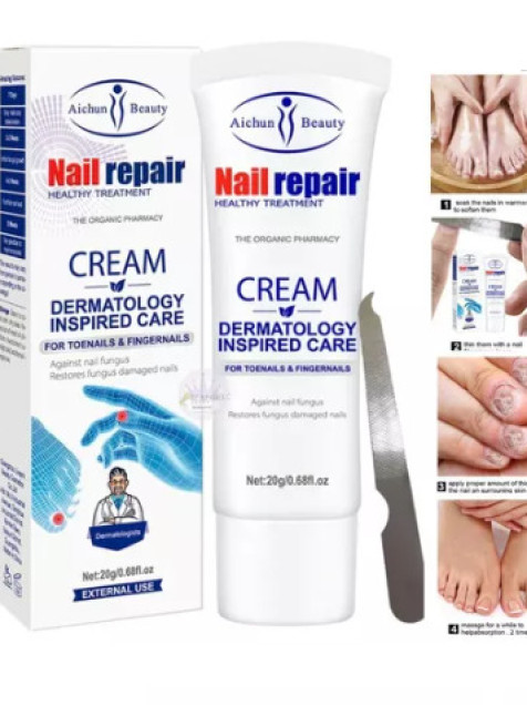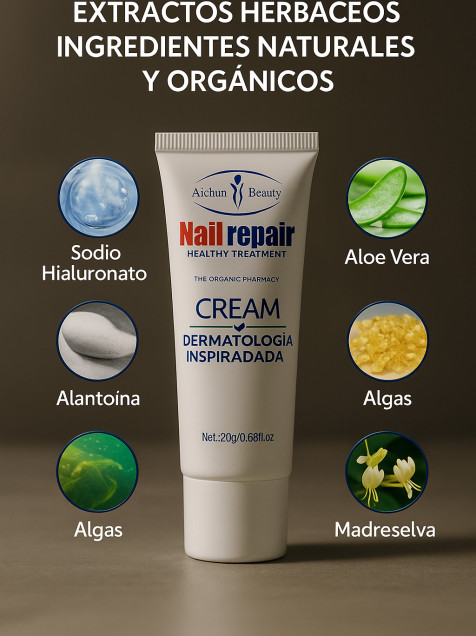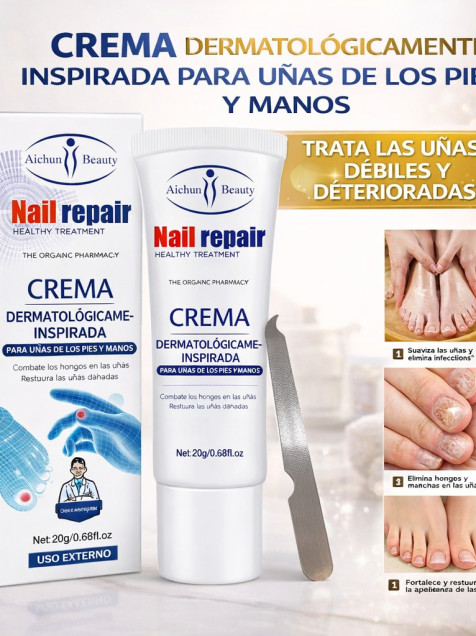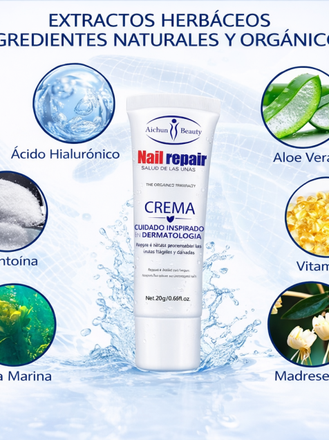 ¡Dale a tus pies el cuidado que se merecen! La crema reparadora "Nail Repair" de Aichun Beauty, con aloe vera, te ayuda a combatir los hongos y a restaurar la salud de tus uñas, dejándolas más fuertes y bonitas. ¡Pies felices y saludables!