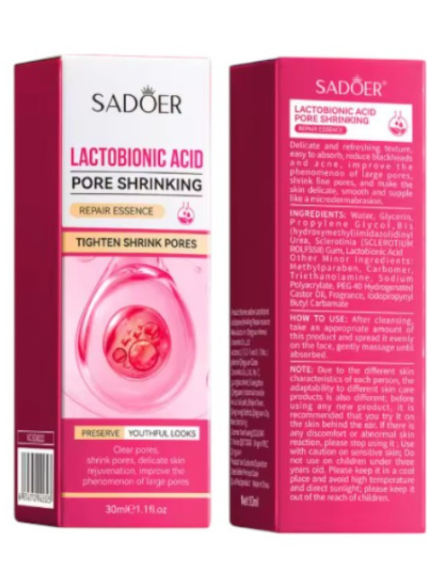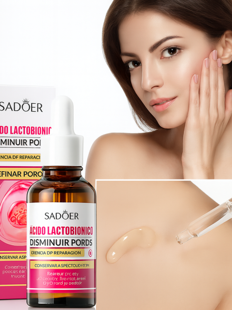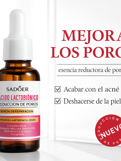 ¡Dale un respiro a tu piel! El Sérum Facial Reductor de Poros con Ácido Lactobiónico de Sadoer minimiza visiblemente los poros dilatados, revelando una textura más suave y uniforme. Luce una piel radiante y rejuvenecida, ¡sin filtros!