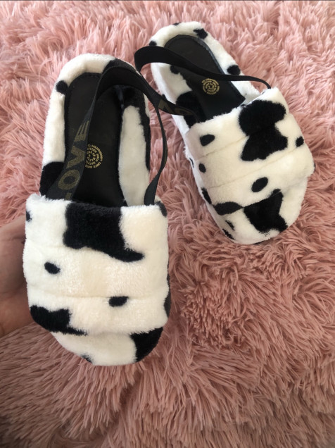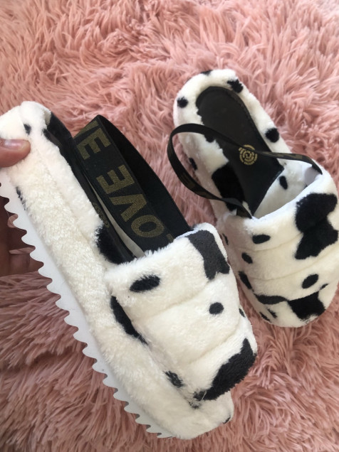 Pantunflas de peluche con estampado de vaquita