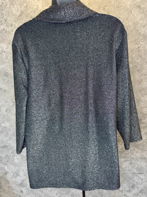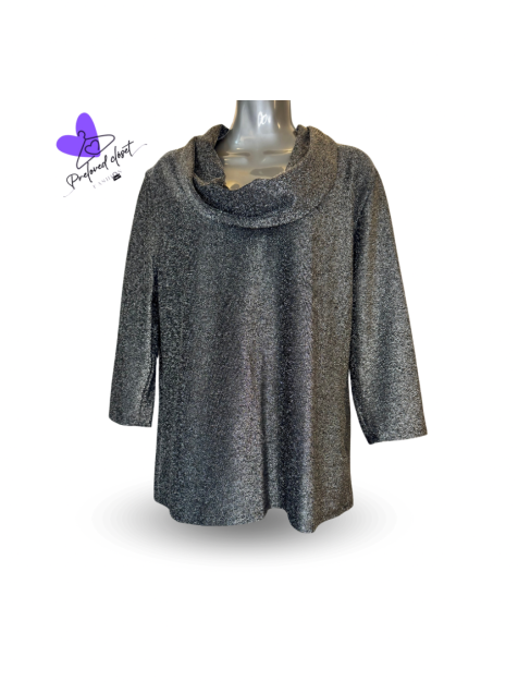 Seminueva Blusa plateada cuello drapeado talla extra grande, Pierre Cardin.
