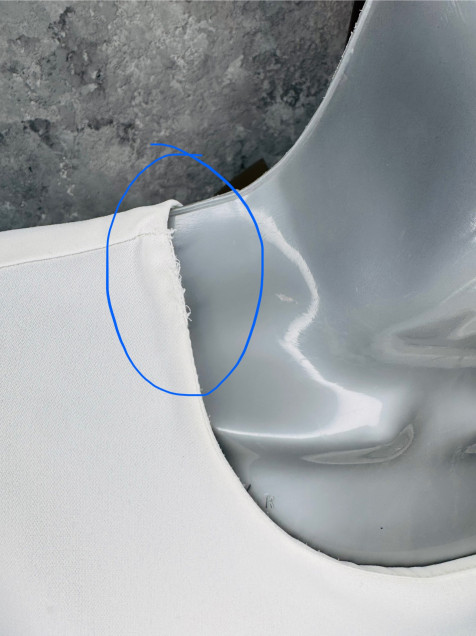 Tiene unos hilitos que le sobresalen presentes en las fotografías