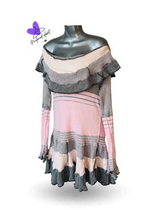 Blusa larga de punto gris con bolillos