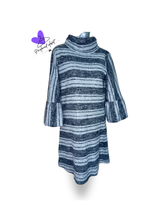 Vestido polar con tela súper calientita, cuello de torturado y mangas estilo cama pana 3/4 con forro en las mismas como se muestran en una de las foto