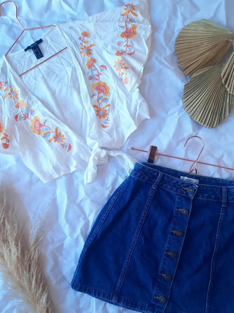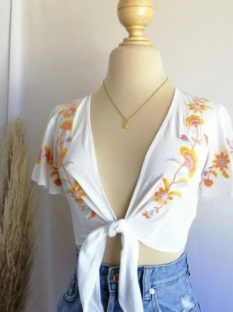 Top nudo FOREVER21 con un bordado precioso, talla M queda también a S🏷