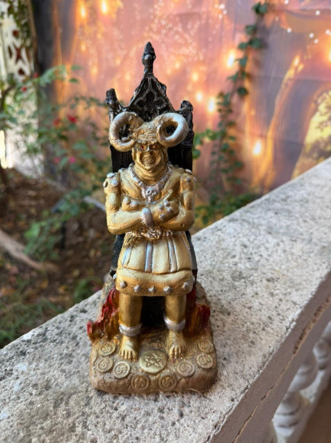 Esta imagen de mammon ya viene consagrada. Te trae incienso y vela para recibirlo en tu altar.