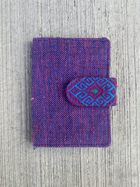 Portapasaporte elaborado con una combinación de textiles de Oaxaca y Chiapas.