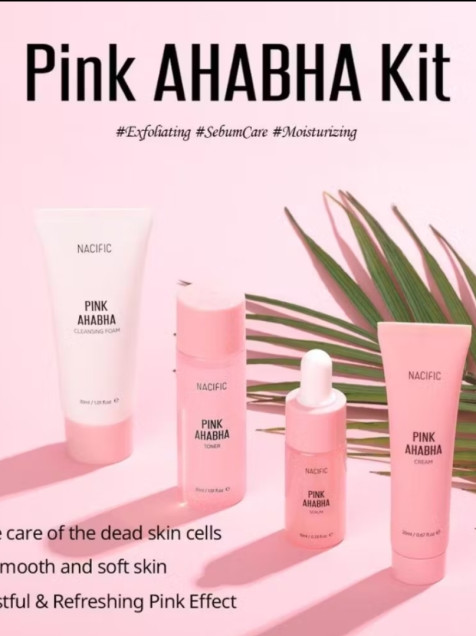 exfoliar la piel, eliminar las células muertas, limpiar poros, hidratar y revitalizar la piel opaca o cansada, gracias a sus componentes de AHA (ácidos alfa-hidroxi) y BHA (ácidos beta-hidroxi) y extracto de sandía. El kit incluye una espuma limpiadora, un tónico, un suero y una crema, que trabajan en conjunto para lograr una tez más suave, fresca y luminosa.