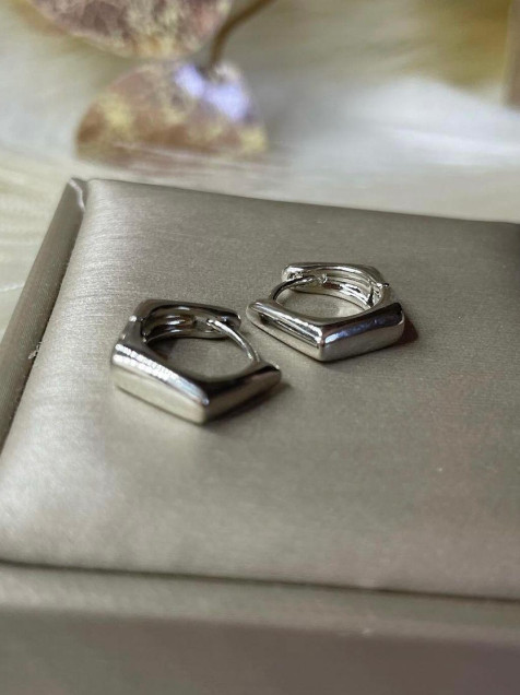 Aretes de rodio laminado, largo 1.1 cm, ancho 0.3 cm
