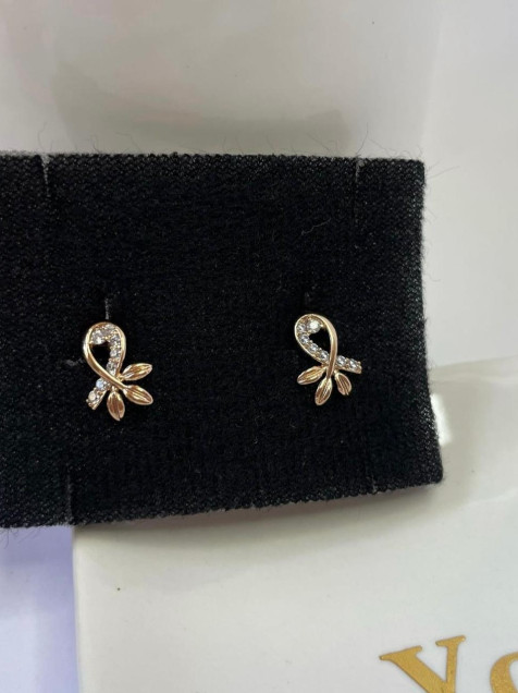 Arete broquel hojas de oro laminado de 18 kt con piedra Swarovski decorativa, largo 1.3 cm, ancho 1 cm.