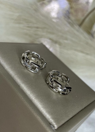 Aretes huggies de rodio laminado con Swarovski, pieza única