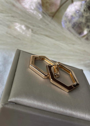 Arracada hexagonal de oro laminado de 18 kt