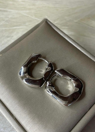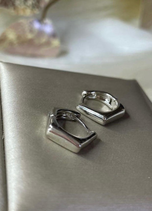 Aretes huggies pentagono de rodio laminado