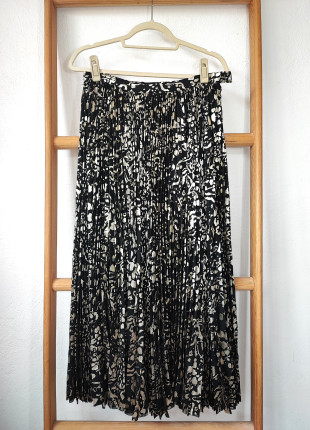 Falda larga tableada negra con dorado