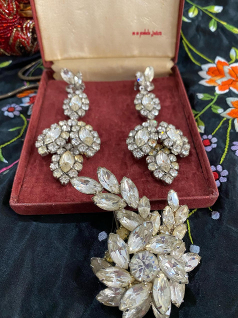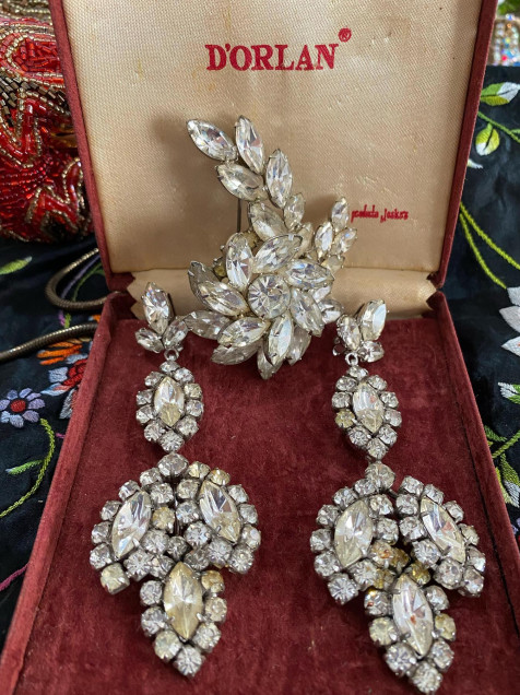 Set de aretes y broche de los años 60s 🖤 Verdaderamente unas joyas