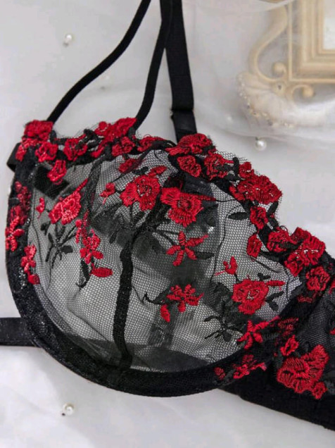 ♦ Tanga con ´puente de algodón y detalles de flores bordadas del mismo tono del brasier, ajustable de las caderas con detalle de liston