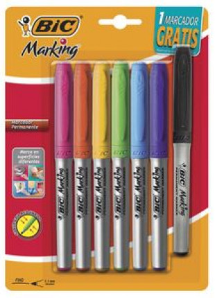 6+1 Marcadores Permanentes Surtidos Delgados Bic