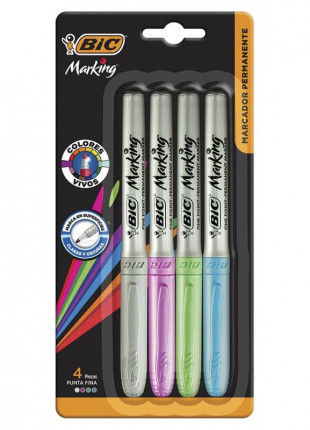 4 Plumones Delgados Metálicos Permanentes Bic