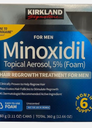 Kirkland Minoxidil ESPUMA 5% Extra Fuerza Hombres Regeneración del Cabello 6 Meses Potente.