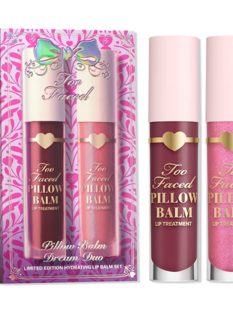 El bálsamo labial hidratante Dream Duo de Too Faced es un exclusivo set de bálsamos labiales líquidos, ricos y cremosos, con aceites frutales, mantecas acondicionadoras y ácido hialurónico para usar de día y de noche y mantener los labios suaves como el terciopelo.