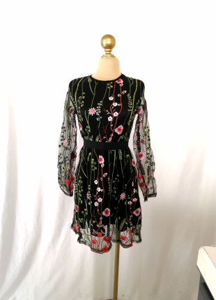 Vestido negro de encaje flores