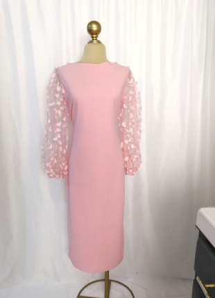 Vestido largo rosa con flores en manga