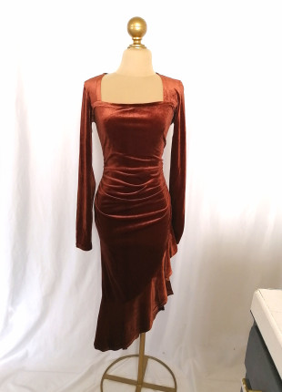 Vestido largo café cobre terciopelo