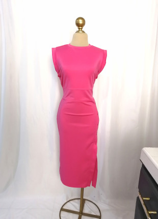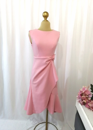 Vestido rosa midi con olán