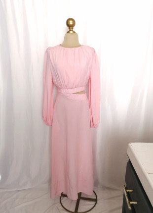 Vestido rosa largo con botones