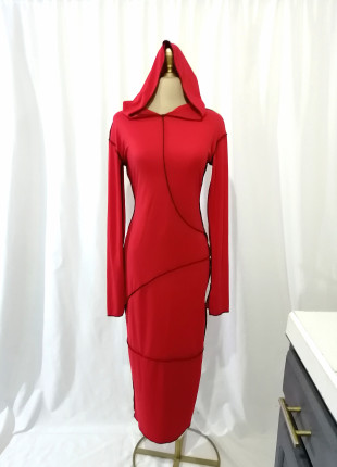 Vestido rojo largo con capucha