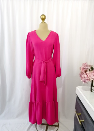 Maxi vestido rosa largo con olan