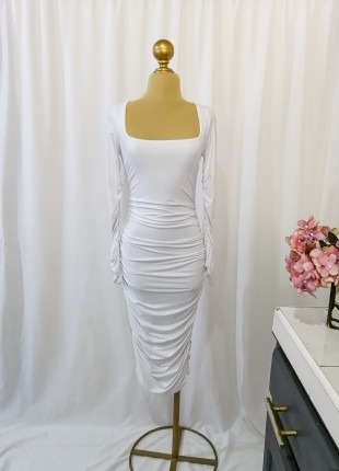 Vestido blanco fruncido al cuerpo